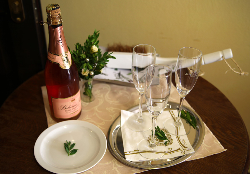 - ubytování ve stylových pokojích se svatební výzdobou pro novomanžele,